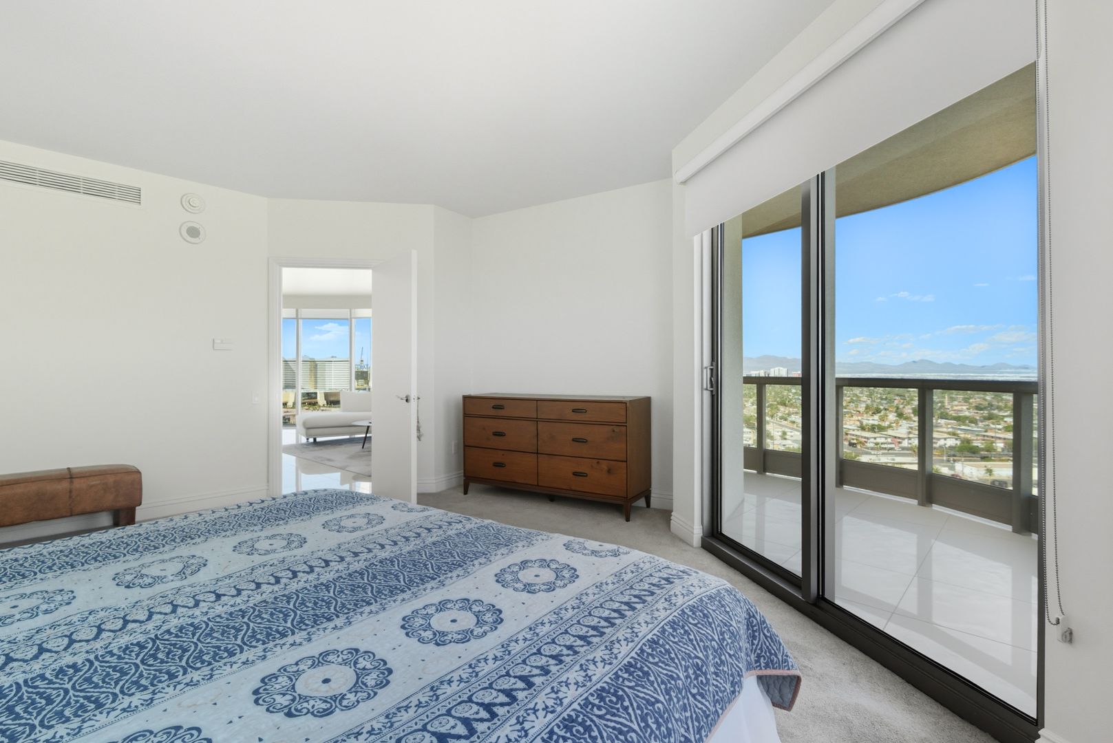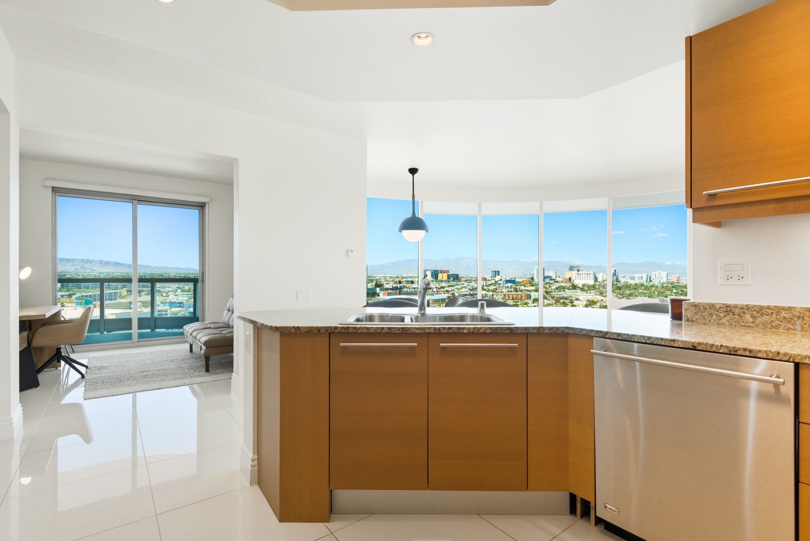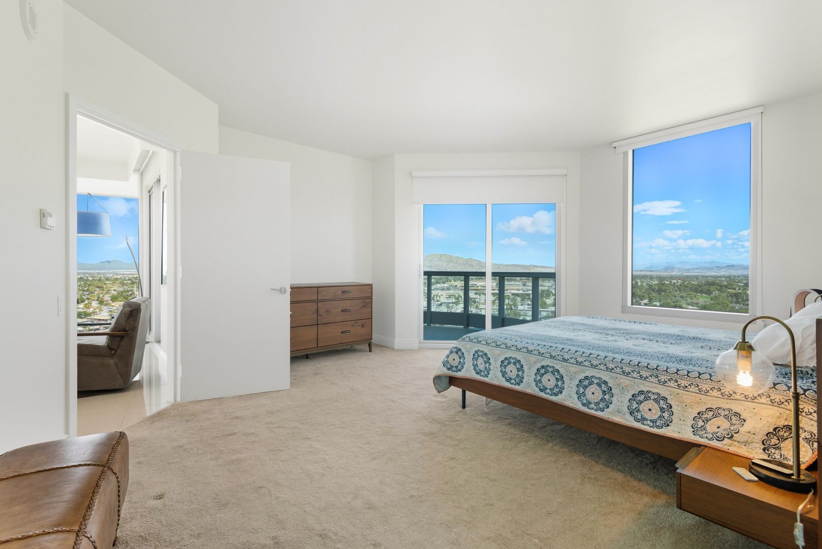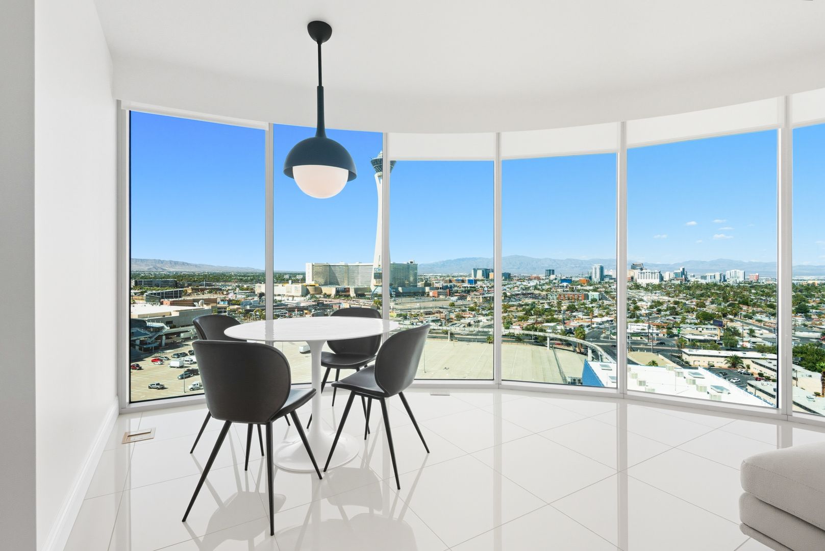 This furnished 2bd/2ba + Den, presents a luxurious high-rise retreat with breathtaking views of the city skyline, golf course, and surrounding mountains. The residence boasts an open-concept design with floor-to-ceiling windows that showcase the stunning scenery while filling the home with natural light. A spacious living area flows seamlessly into a modern kitchen appointed with high-end finishes, ideal for both entertaining and everyday living. The private balcony offers a perfect spot to unwind and take in the views. Located in the prestigious Turnberry Towers, residents enjoy 24-hour guard-gated security, a resort-style pool, fitness center, valet, and concierge services, all just minutes from the world-famous Las Vegas Strip.