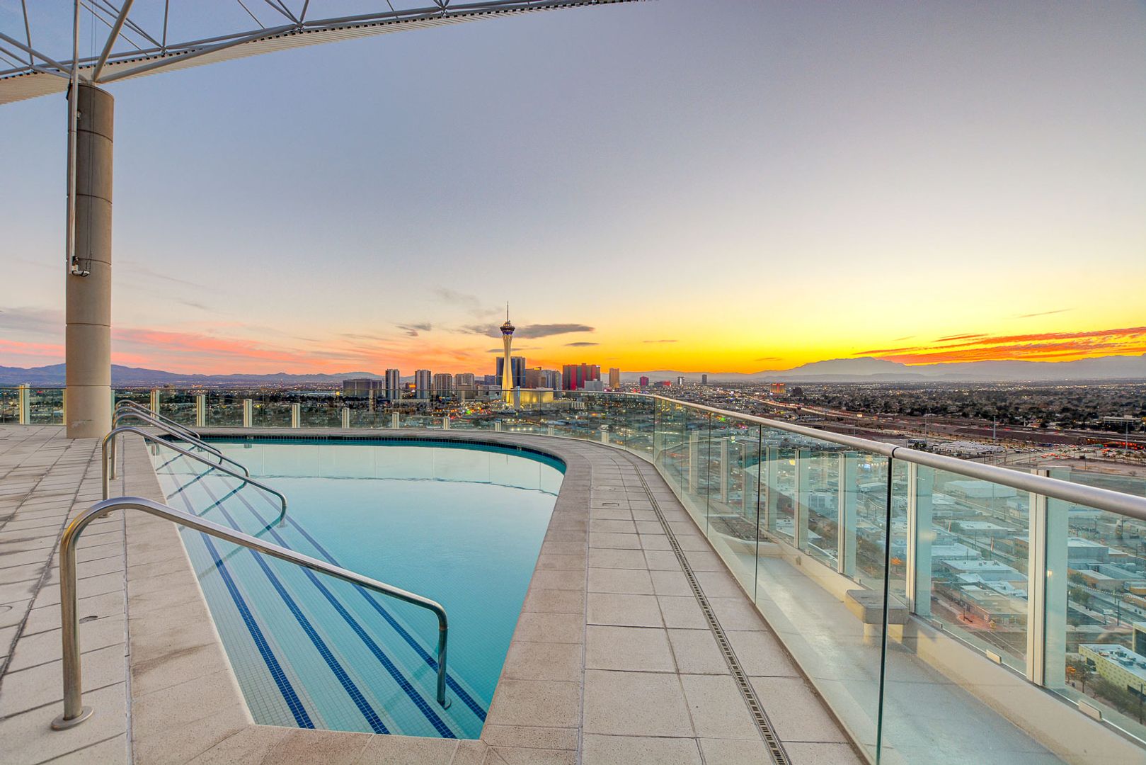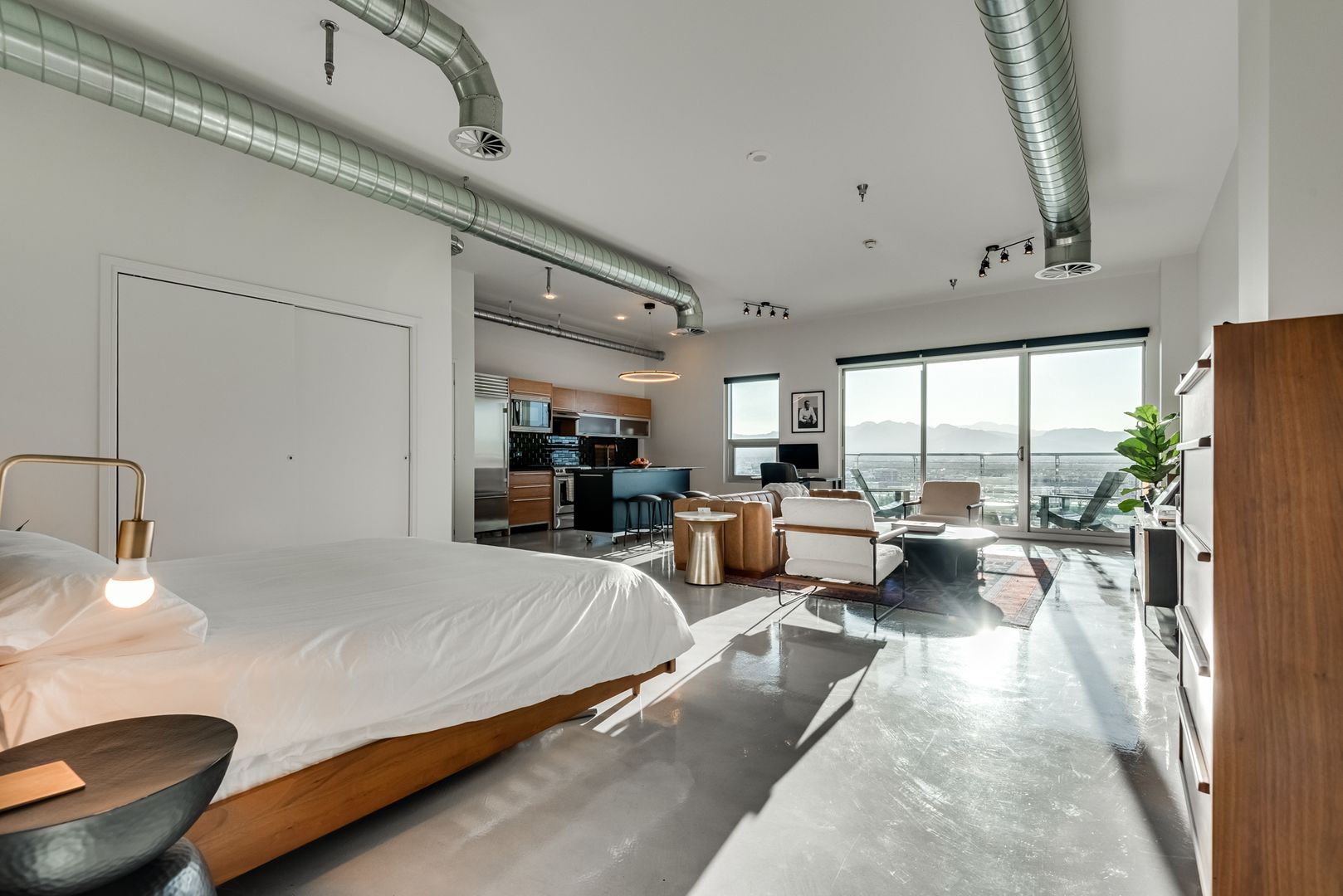Perched on the 15th floor of the prestigious Newport Lofts, this fully furnished unit offers a sophisticated blend of modern design and elevated city living. This expansive 911-square-foot residence features soaring ceilings, polished concrete floors, and floor-to-ceiling windows that frame panoramic views of the Las Vegas Strip and surrounding mountains. A sleek chef’s kitchen with granite countertops and stainless steel appliances flows seamlessly into the open-concept living space, perfect for both relaxation and entertaining. With exclusive access to a rooftop pool, fitness center, and 24-hour concierge service, this luxury loft embodies the essence of refined urban living in the heart of downtown Las Vegas.