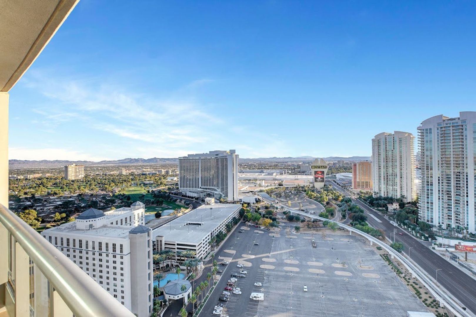 This spacious 1-bedroom, 1.5-bath residence offers an open-concept layout, flooding the interior with natural light and showcasing breathtaking vistas of the Las Vegas skyline and surrounding mountains. Designed with modern elegance, the unit features a gourmet kitchen with granite countertops, high-end stainless steel appliances, and custom cabinetry—perfect for entertaining or casual dining. The primary suite is a serene retreat, complete with a generous walk-in closet and a luxurious bathroom featuring marble finishes, vanity, and a soaking tub. Enjoy indoor-outdoor living with an expansive private terrace, ideal for morning coffee or evening cocktails. Residents of Turnberry Towers enjoy resort-style amenities including a lagoon-style pool with waterfalls, tennis courts, a fitness center, valet, concierge, and 24-hour security. Located just minutes from the Las Vegas Strip, world-class dining, shopping, and entertainment, this is high-rise living at its finest.